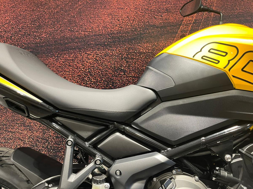 Powering the Tiger Sport 800 is a lively 808cc liquid-cooled, DOHC inline-three engine, delivering approximately 94PS at 10,750rpm and 79Nm of torque at 7,900rpm. The signature triple-engine provides thrilling acceleration and mid-range punch, while smooth up- and down-shifting is made effortless by the slip/assist clutch and Triumph Shift Assist quickshifter.
