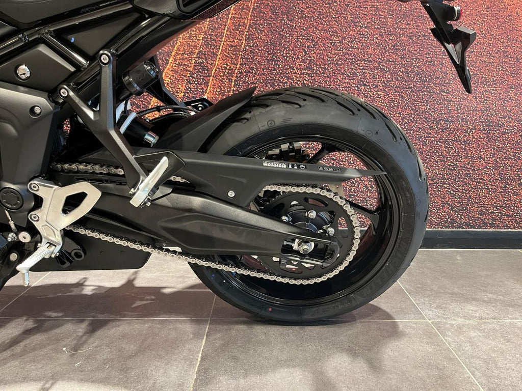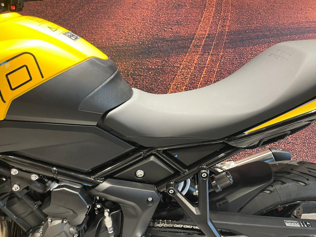 Braking duties are handled by dual front 310mm discs with Brembo twin-piston calipers and a single 255mm rear disc with Nissin caliper, supported by optimised cornering ABS for confident stopping performance.