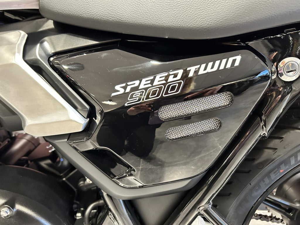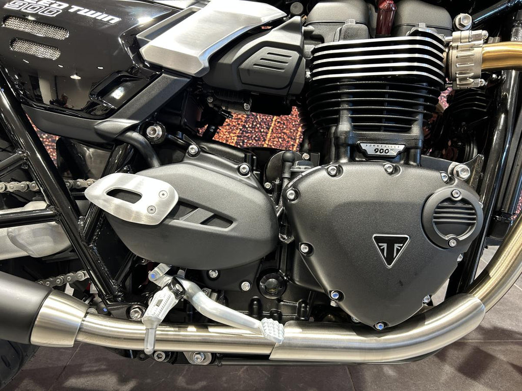 Finished with premium touches like brushed aluminium detailing, stylish tank badging, and black engine covers, the Speed Twin 900 turns heads wherever it goes.