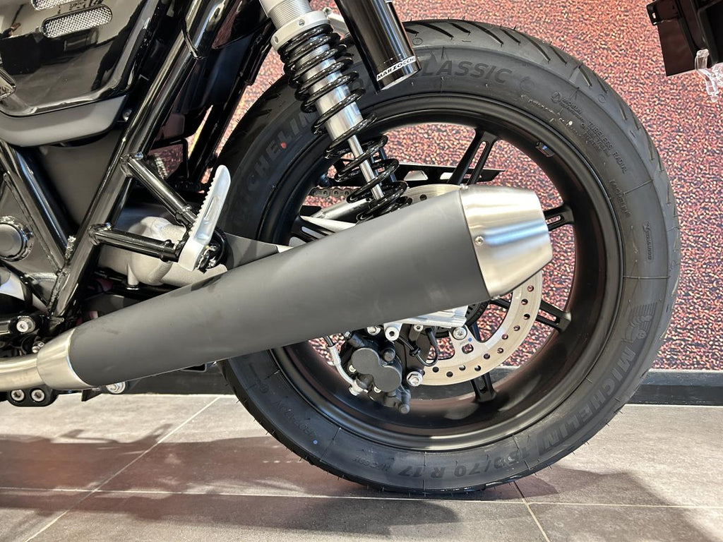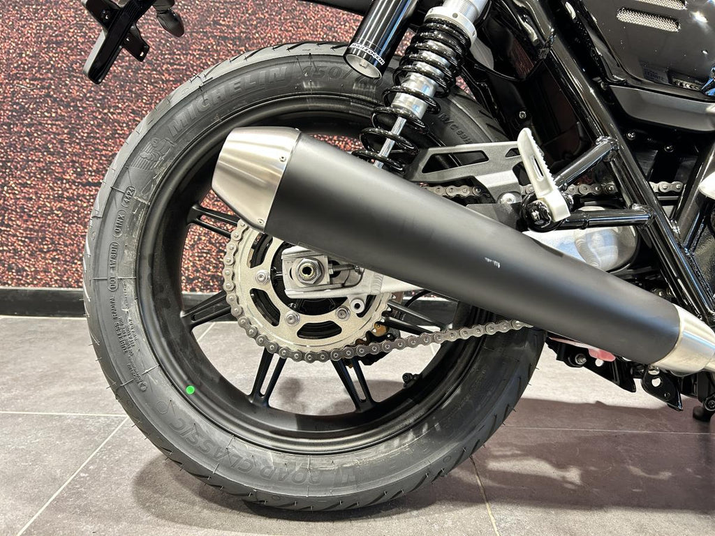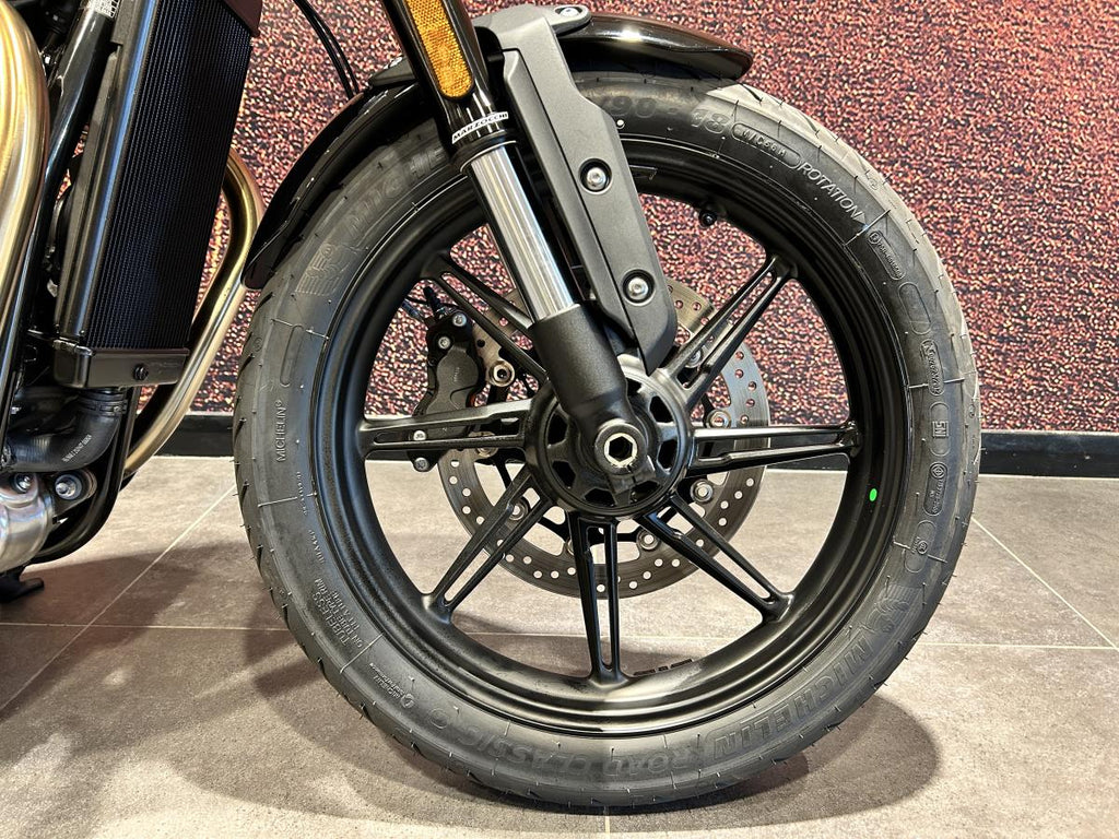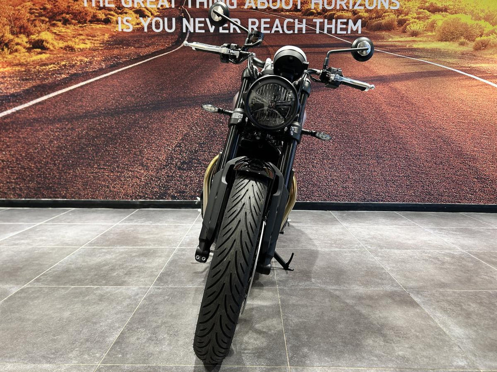 Classic 18-inch front and 17-inch rear cast wheels come fitted with modern tyres for excellent grip and stability. Stopping power is handled by a 310mm front disc with a Brembo 4-piston caliper and a 255mm rear disc with Nissin caliper, supported by standard ABS.