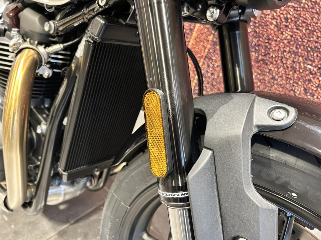 Single Ø 320mm floating disc, Triumph branded four-piston radial caliper, OCABS |