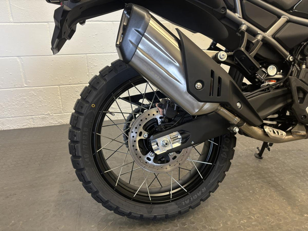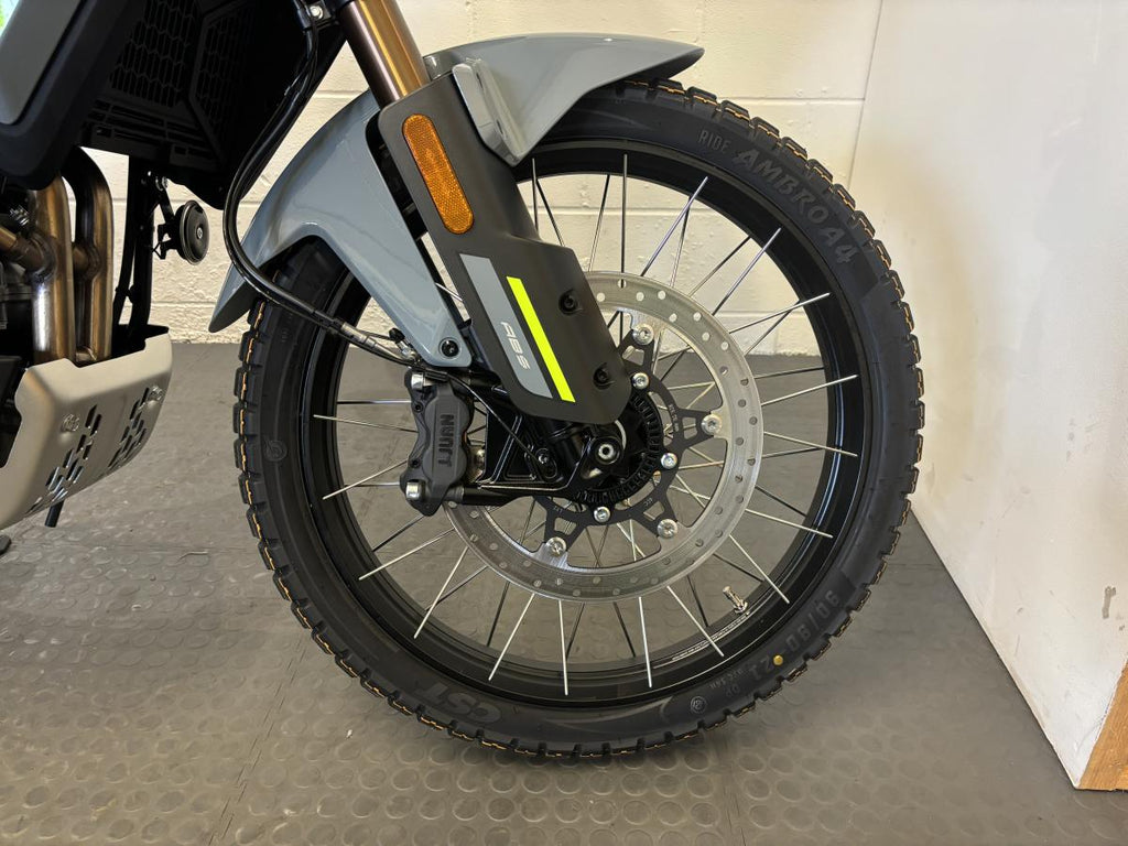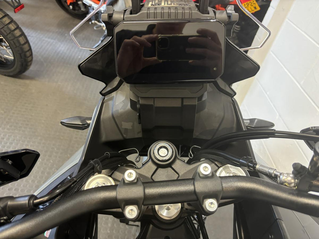The CFMOTO 450MT redefines the middleweight adventure segment. Powered by a smooth 449cc parallel-twin engine, it delivers strong, responsive performance with exceptional balance and control. Its long-travel suspension, lightweight chassis, and upright riding position make it equally capable on the road and off the beaten track. Finished in stunning Tundra Grey, the 450MT looks as good as it rides.