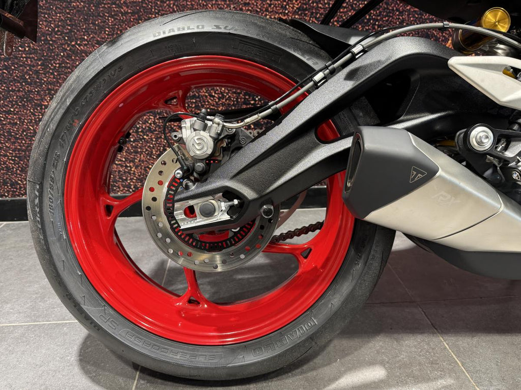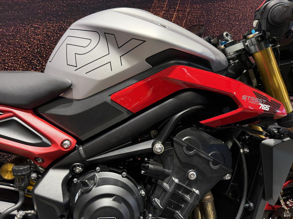 The Street Triple 765 family features a light but rigid aluminium twin-spar frame, superb suspension and braking hardware tuned to match the performance character.