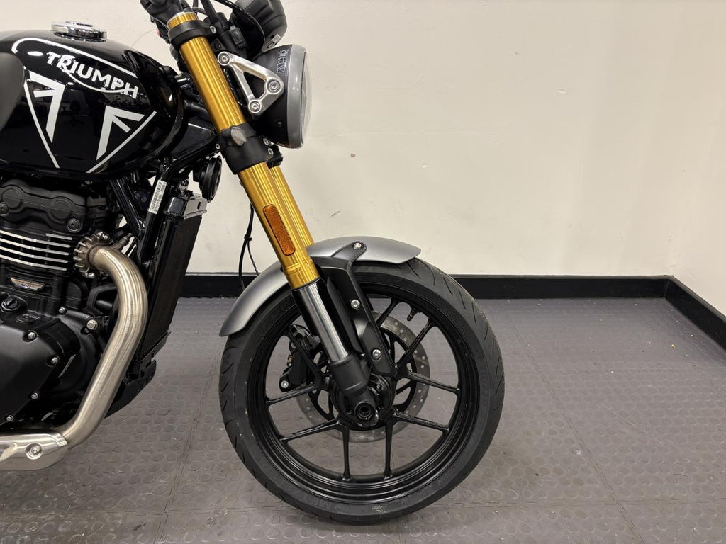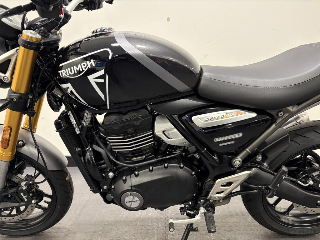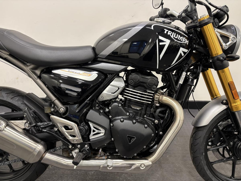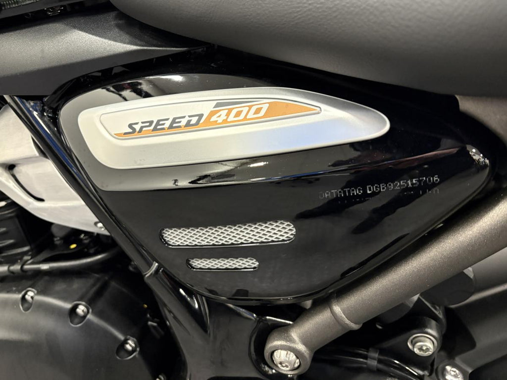 The Speed 400 brings Triumph’s unmistakable stripped back custom style, agile handling, responsive performance and category-defining build quality to a new class of rider. The Speed 400 is a great fit for all riders of all sizes and experience thanks to its neutral riding position and easy manoeuvrability.