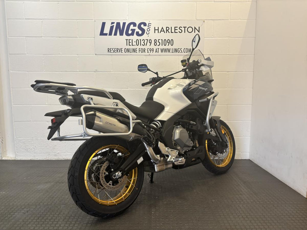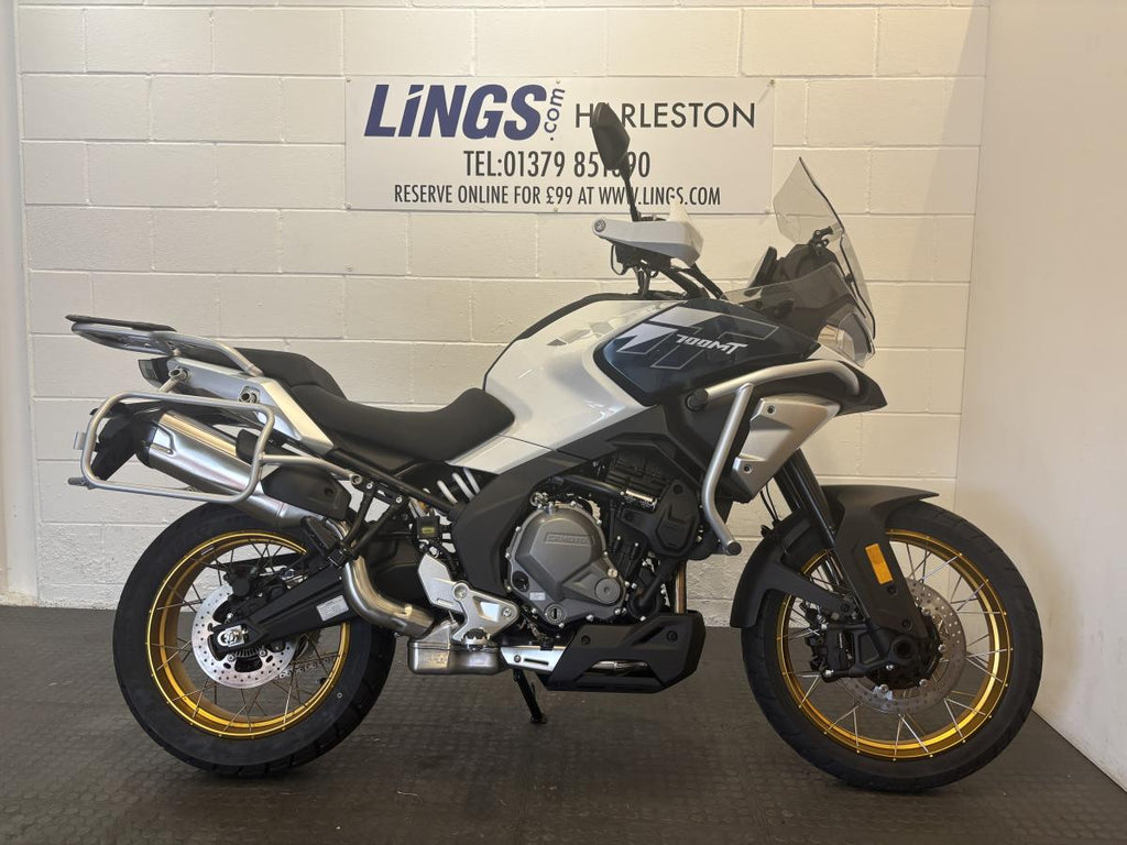 The CFMOTO 700MT combines strong mid-range power with refined handling and impressive comfort. Powered by a responsive 693cc twin-cylinder engine, it delivers smooth acceleration and confidence-inspiring control for every journey. The upright riding position, comfortable seat, and adjustable windscreen make it ideal for touring, while the robust chassis and advanced suspension ensure stability on a wide range of roads.