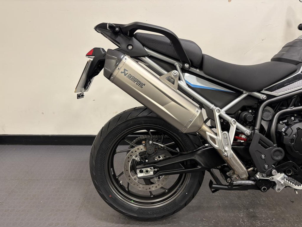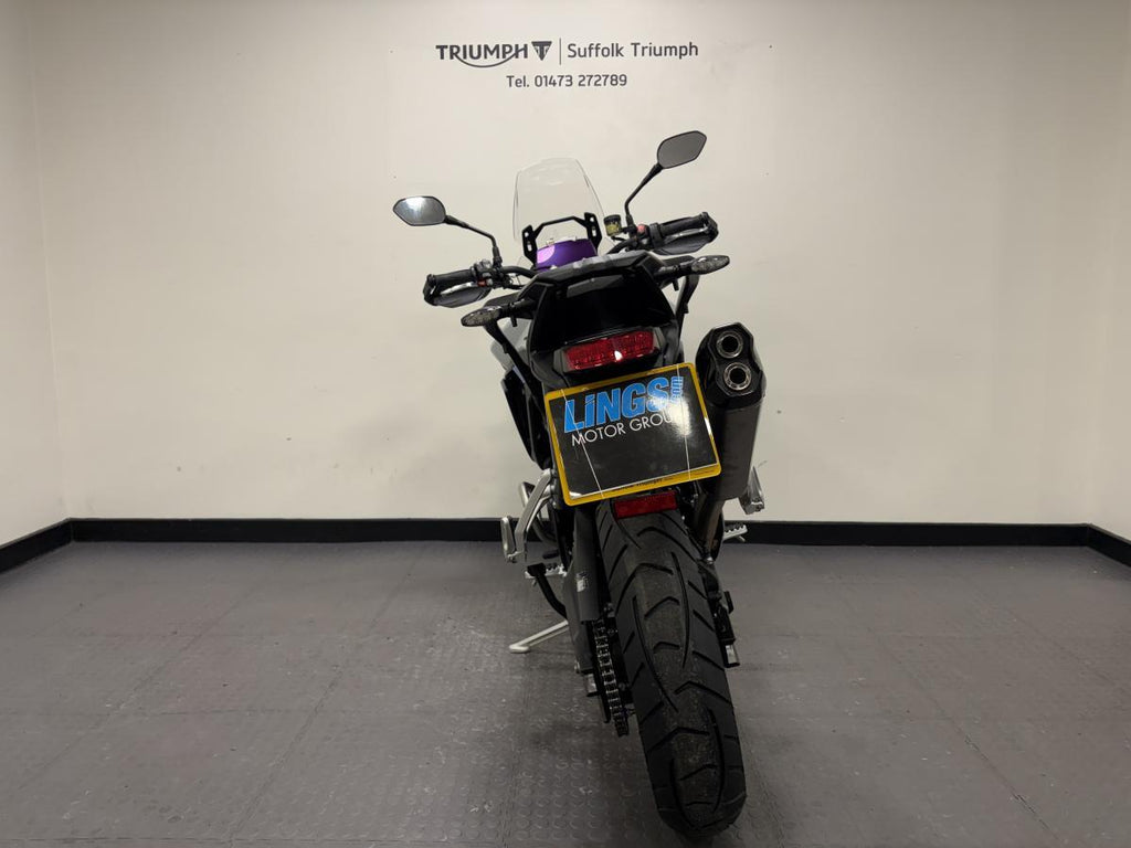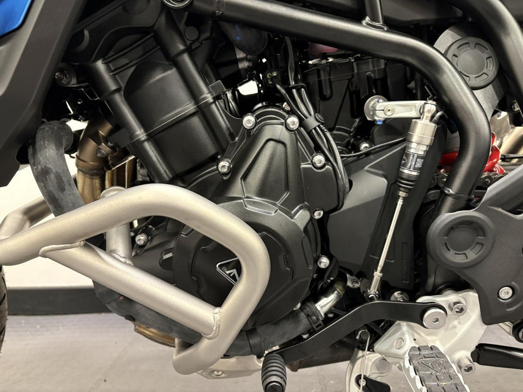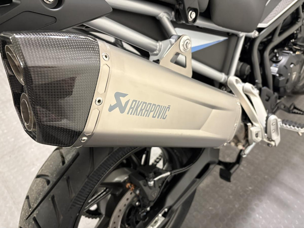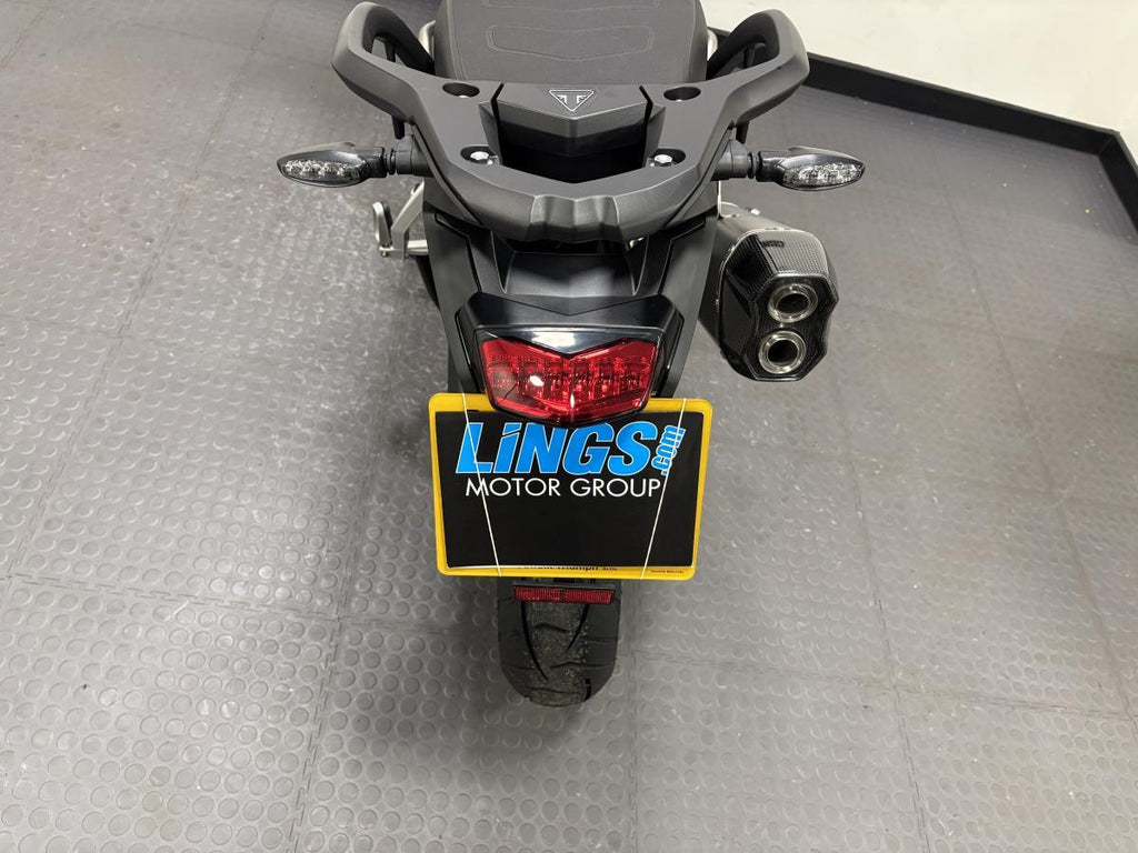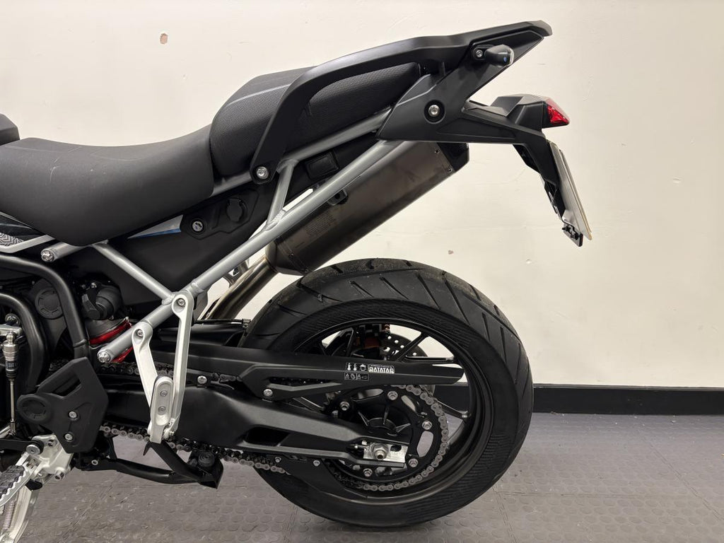 This beautiful machine comes with Optimised Cornering ABS and Traction Control, Tyre Pressure Monitoring System (TPMS), Emergency Deceleration Warning and high visibility marker lights enhance safety and rider confidence. Alongside the multiple safety features, Marzocchi 45mm upside down forks deliver superb road handling and an electronically adjustable rear suspension unit can be set up for solo, pillion, or fully-loaded touring at the touch of a button. To finish this beast a lightweight and beautifully engineered Akrapovič silencer adds a distinctive edge with its carbon-fibre end cap, sharper response, and signature triple soundtrack.