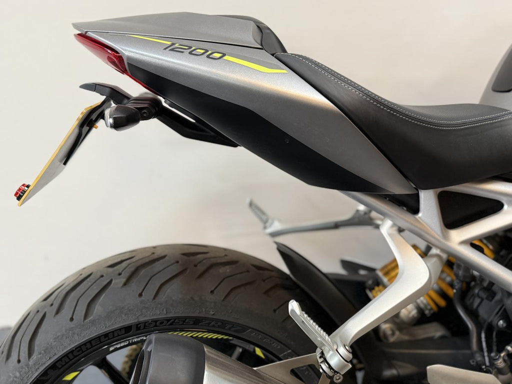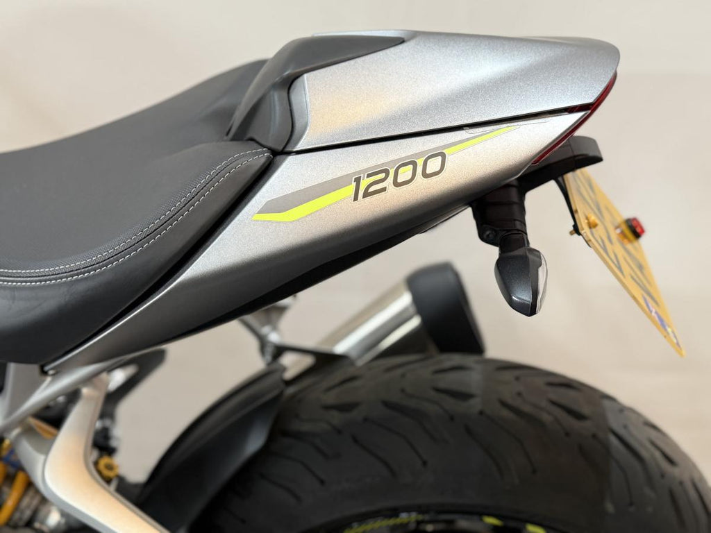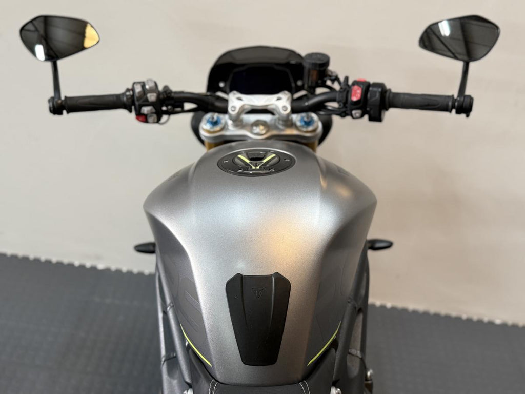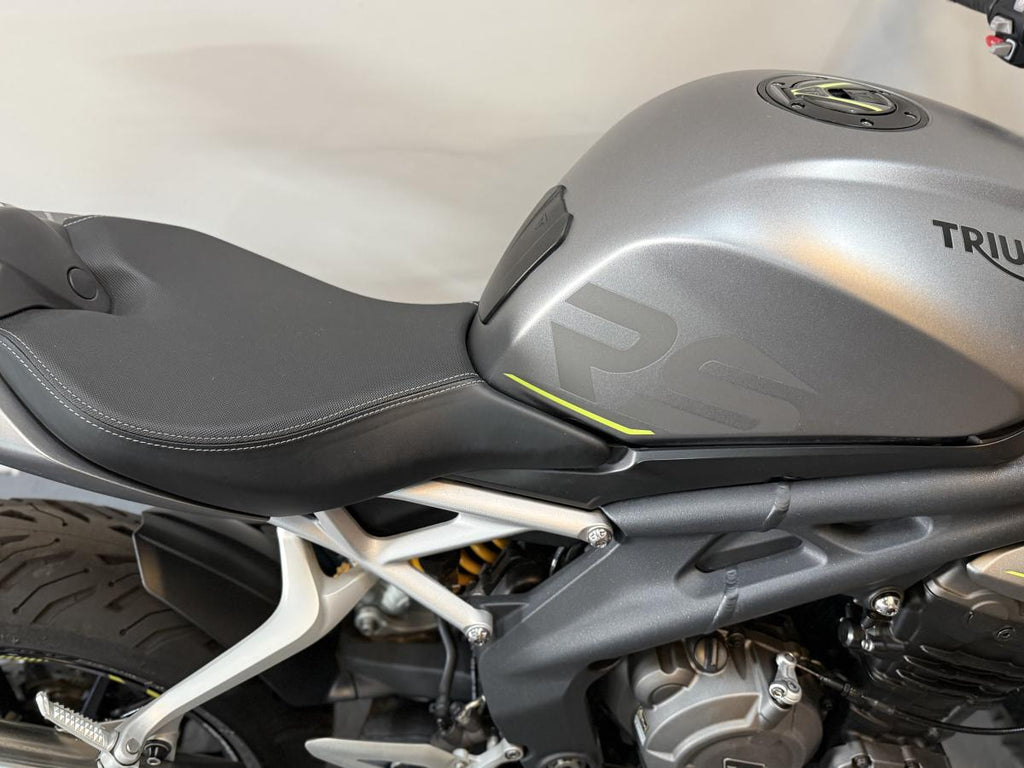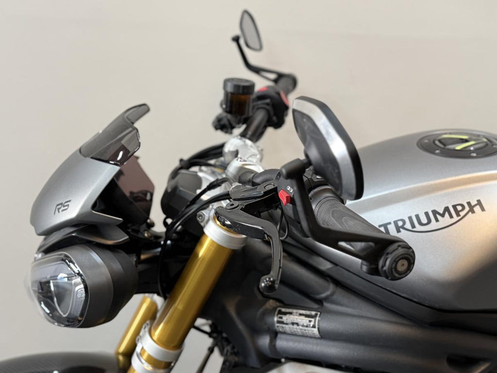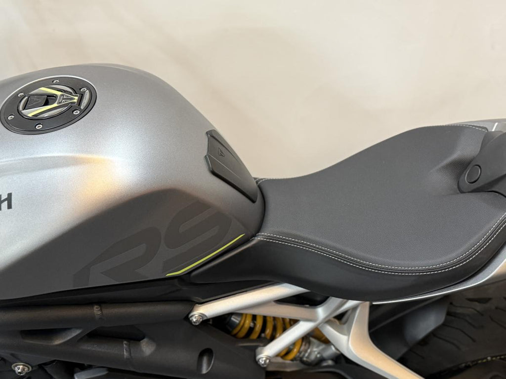 This 2022 Triumph Speed Triple 1200 RS is a high-performance naked motorcycle that perfectly balances track-focused capability with road-going refinement. Finished in Matt Silver Ice, this one-owner machine has been meticulously maintained and comes with a full service history. Powered by the potent 1160cc triple engine, the RS is designed to be the ultimate street-focused roadster, offering a significant power-to-weight ratio and sharp, agile handling. This particular example has been enhanced with a variety of tasteful accessories that complement its aggressive styling while maintaining the premium feel of the RS range.