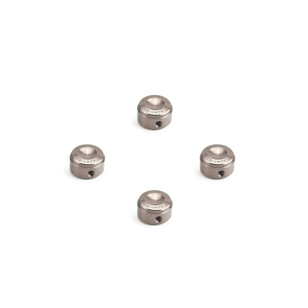 A set of four CNC-machined headbolt covers featuring stylish Triumph branding which adds an extra premium finishing touch to the engine exterior