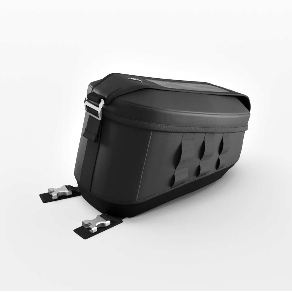 Triumph branded, modern, strap mounted Tank Bag