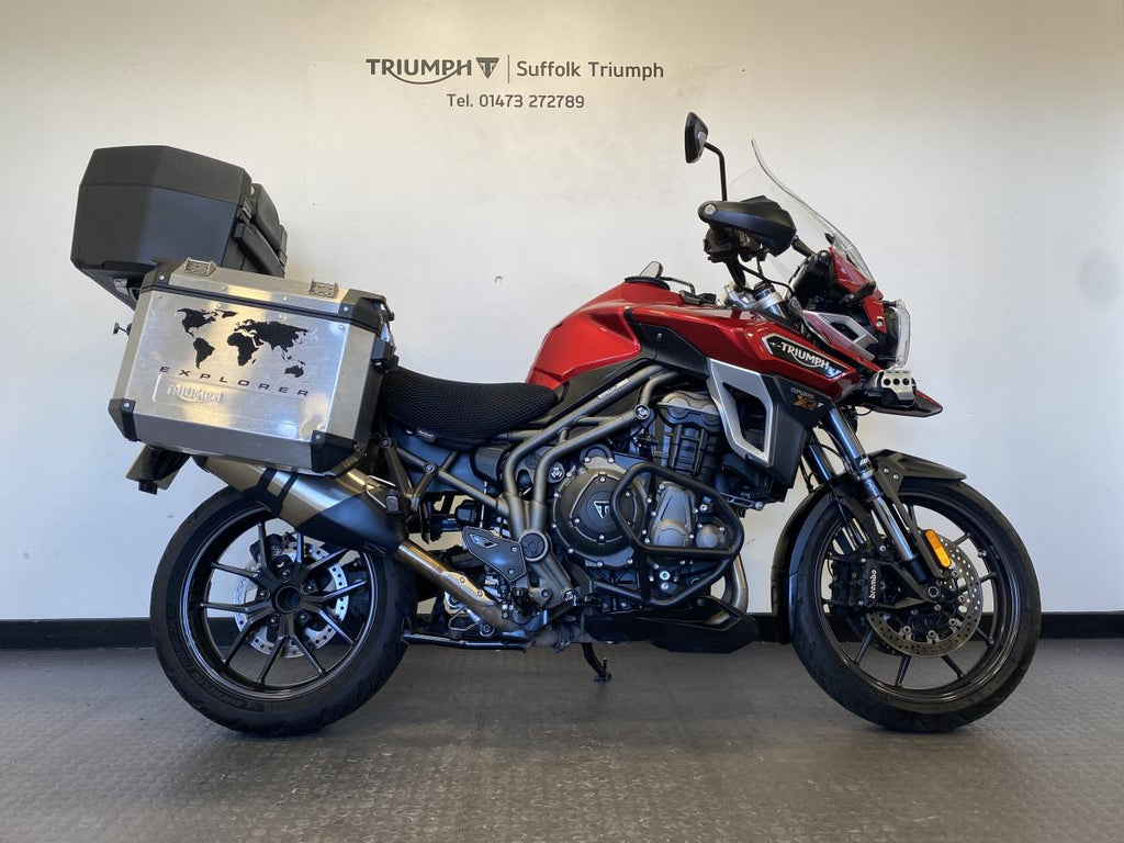This is a 2016, Triumph Tiger Explorer 1200 XRT which has had 4 owners and currently has 25097 miles on the clock. This beautiful machine comes with Full Luggage, Headlight Protector, Heated Grips and much more!