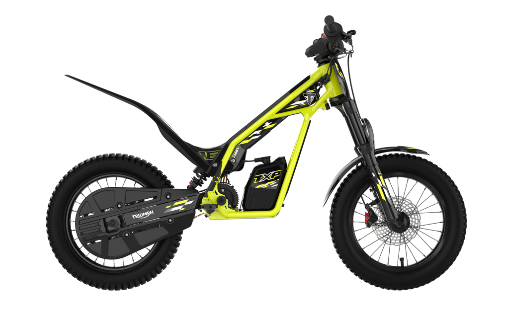 The TXP-16 introduces hydraulic disc brakes for stronger, more progressive stopping power, giving riders greater assurance as they push their limits. A scaled steel frame with a 720mm wheelbase provides added stability, while upgraded suspension — 80mm of travel at the front and 90mm at the rear — supports more adventurous riding across a variety of terrain. Like its smaller sibling, it features Triumph’s unique 2-in-1 modular setup, allowing riders to easily switch between seated and standing configurations as their skills evolve.